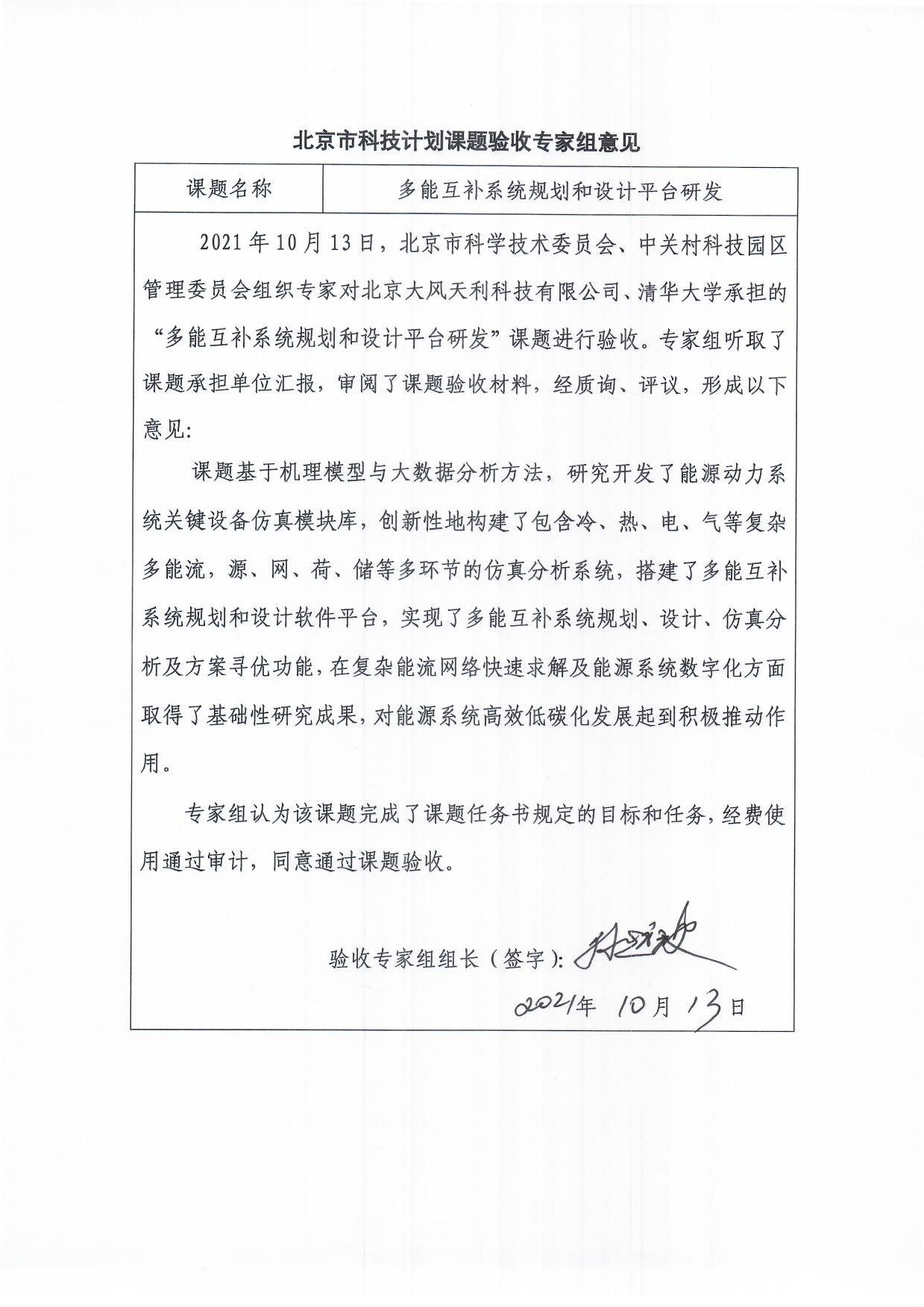 2021年10月13日,大風(fēng)科技與清華大學(xué)能源與動(dòng)力工程系共同承擔(dān)的北京市科委“設(shè)計(jì)之都”專項(xiàng)課題——多能互補(bǔ)系統(tǒng)規(guī)劃與設(shè)計(jì)平臺(tái),順利通過(guò)了專家驗(yàn)收。