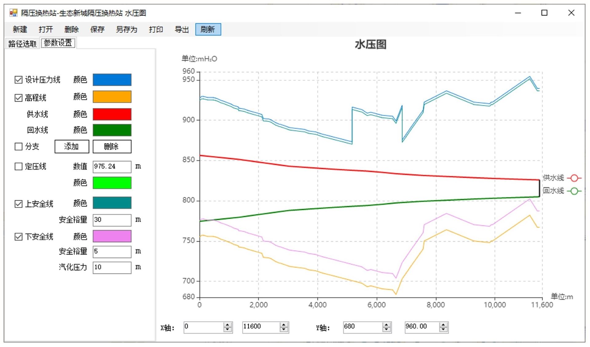 ●由熱源和熱用戶的參數(shù),自動確定管網(wǎng)設(shè)計流量